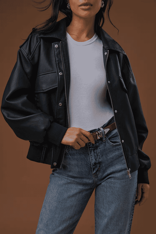 This jacket is a chic blend of eco-consciousness and style. The Bardot Vegan Leather Belted Jacket is a statement piece that can elevate your April showers clothing. Its taupe color gives it a versatile edge, blending well with a variety of outfits.
