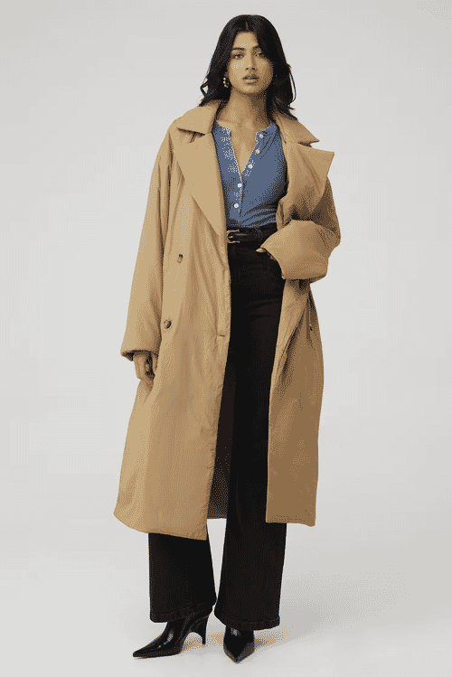 When it comes to stylish rain jackets, Good American’s Puffer Trench Coat is a knockout.
