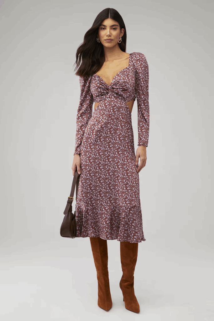 The Lainie Dress by ASTR, in its unique brown-lilac hue, is perfect for those seeking stylish workwear for autumn. This dress combines the warmth of fall tones with the freshness of lilac, creating a harmonious blend that is both eye-catching and professional.