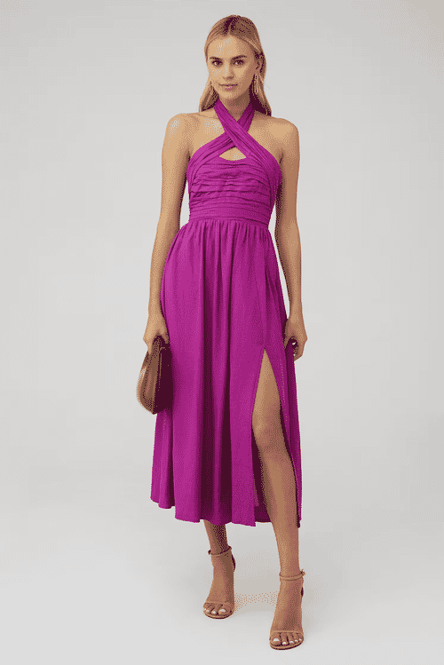 First on our list of best spring dress rentals is the Flutter Slip Dress from Selkie. This dress, with its soft pastel hues and ethereal silhouette, embodies the spirit of spring. Its flowing design lets you move with ease, making it a perfect choice for a day at the races.