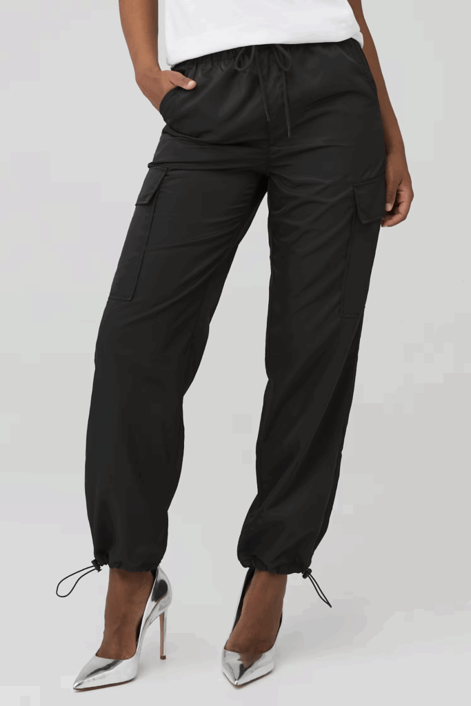 The Jade Cargo Trouser by PISTOLA in classic black offers a modern twist to traditional cargo pants. These trousers are not only functional with their multiple pockets but also incredibly stylish, making them suitable for various occasions.