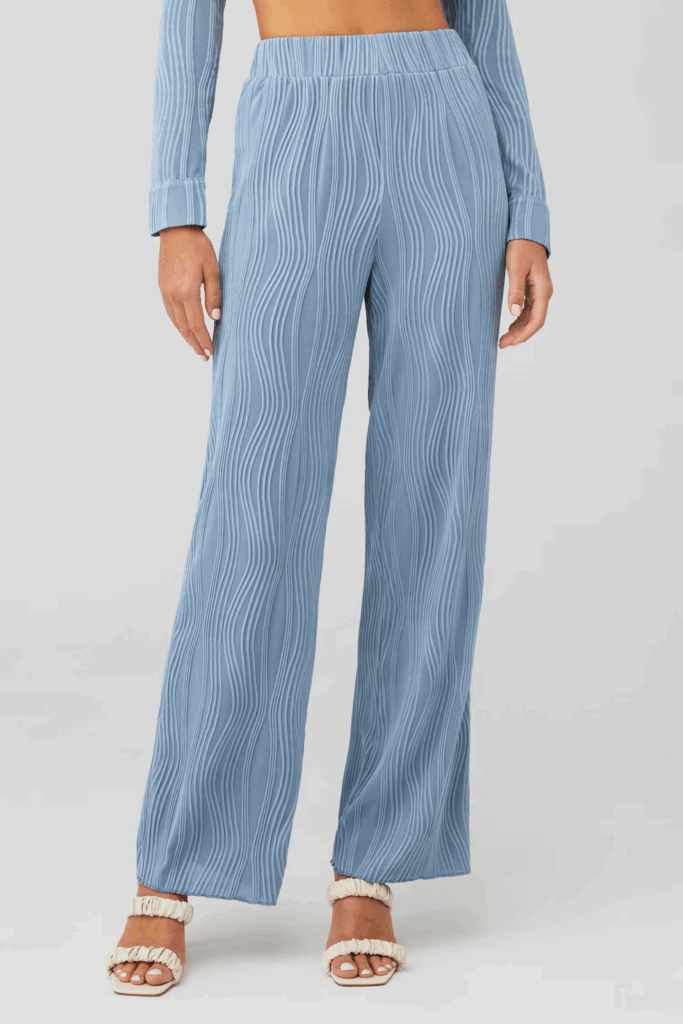 The Tela Plisse Trouser by 4th & Reckless in a striking blue is the epitome of elegance and versatility.