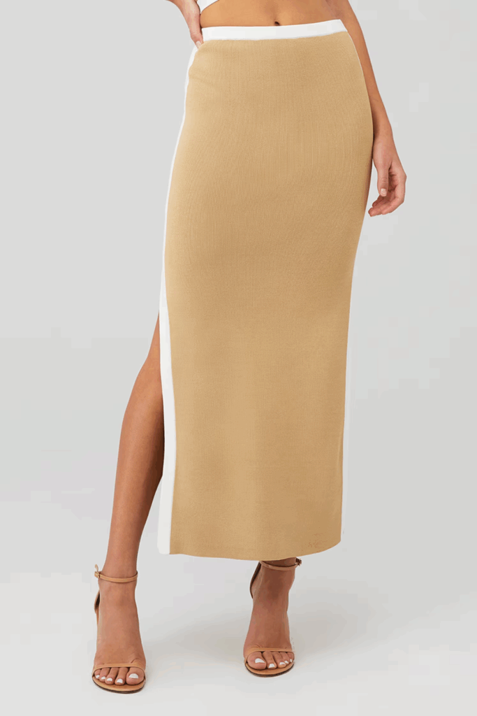 The Taylor Skirt by SIGNIFICANT OTHER is a unique addition to your knitwear collection. In a beautiful fawn color, this skirt adds a touch of elegance to any outfit.