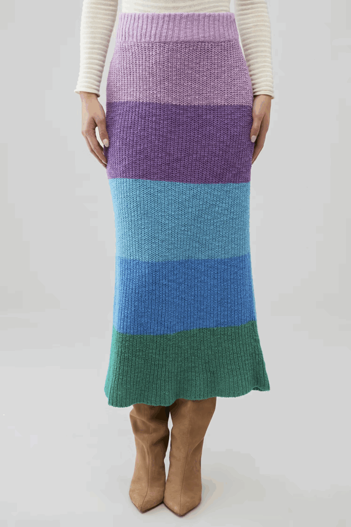 Add a splash of color to your winter wardrobe with the Pippa Sweater Skirt from Show Me Your Mumu. Featuring a vibrant sunset stripe, this skirt is both playful and chic.