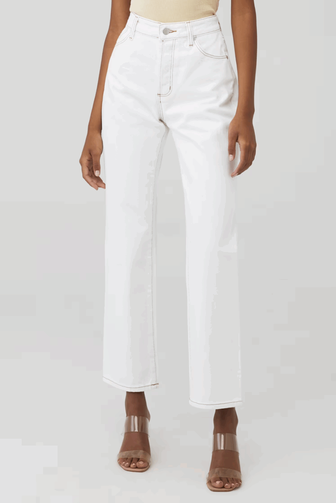 Step into style with ROLLAS’ Classic Straight Ankle jeans. The 80s white shade is a timeless neutral that pairs beautifully with any top, making it one of the most versatile fall pieces to rent.