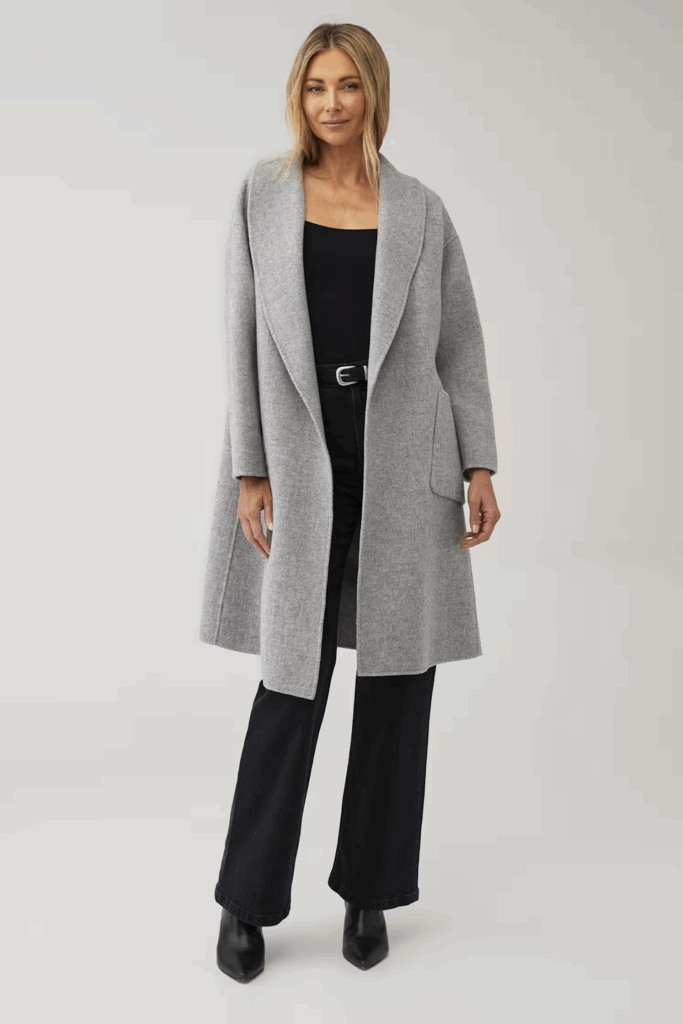 The Thara Coat by LAMARQUE is the epitome of chic sophistication. Its light grey hue offers a perfect neutral base, making it a versatile fall piece to rent for any wardrobe.