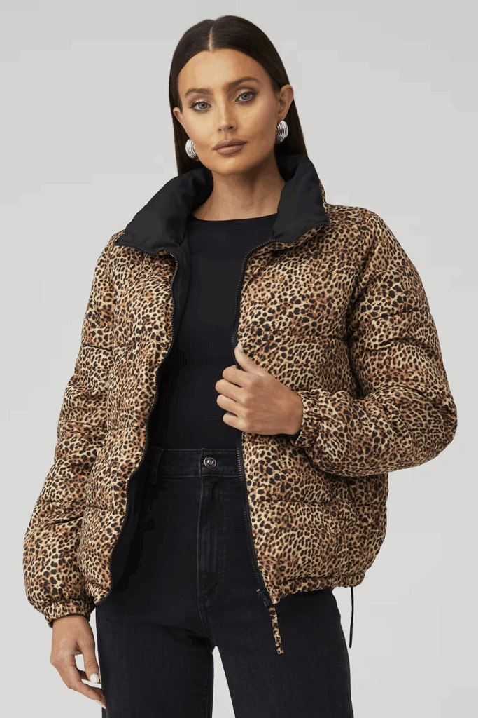 Make a bold statement this fall with the BB Dakota Cool Kitten Puffer in leopard print. This trendy puffer jacket combines warmth with a playful pattern, ensuring you stand out in any crowd.