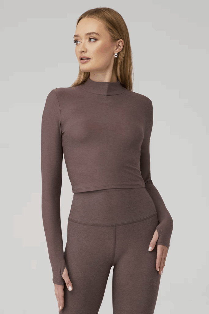 For those who prioritize comfort without compromising on style, the Beyond Yoga Featherweight Moving On Cropped Pullover in Truffle Heather is an excellent choice.
