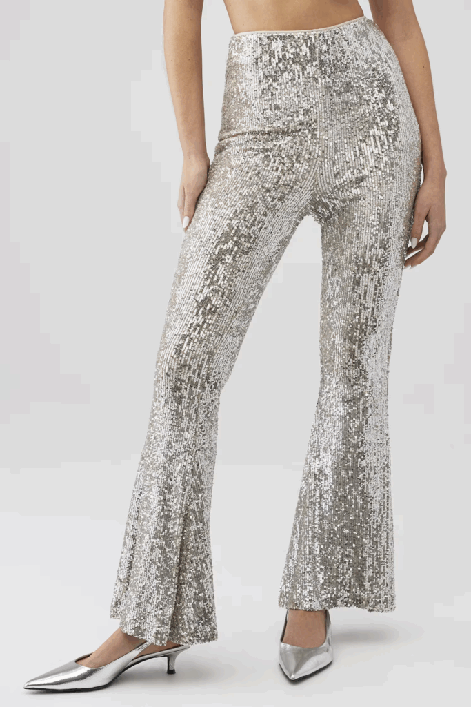 These platinum sequin pants are an excellent choice for those who want to add a touch of glamour to their party outfits.