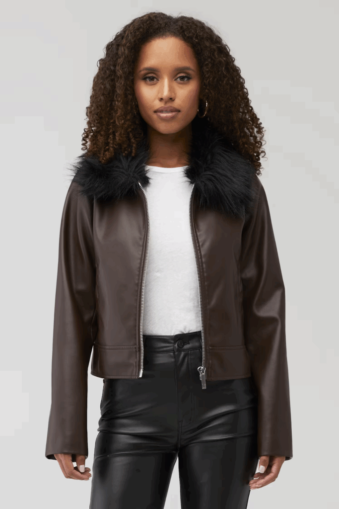 The X Unreal Fur Copenhagen Jacket by Être Aimé in chocolate is a timeless piece that exudes sophistication. Its rich color and plush texture make it a staple for any fall wardrobe.