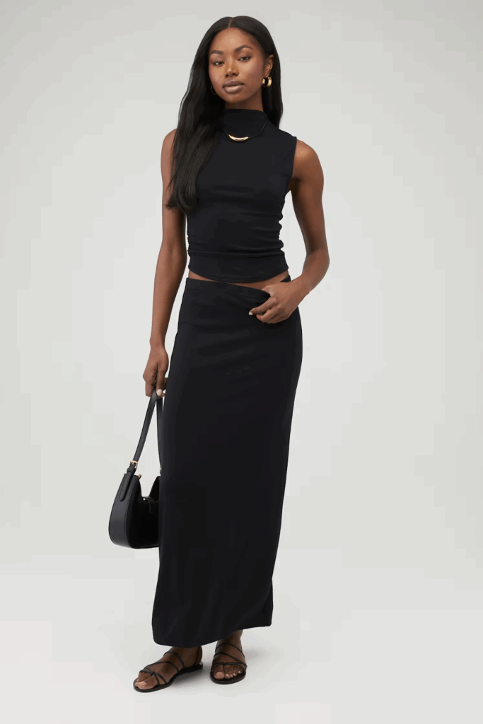Elevate your fall fashion game with the Ellie Set from Free People. This chic black skirt is the epitome of versatility, perfect for both day and night outings. Its classic design pairs effortlessly with a variety of tops, making it a staple for any autumn wardrobe.