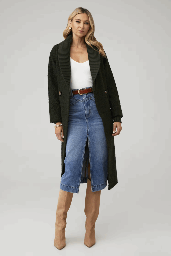 For a timeless and versatile piece, consider the Laria Coat by Heartloom. This olive-colored coat is a classic addition to any wardrobe, offering a sleek silhouette and sophisticated look.