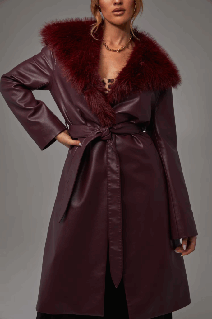 The X Unreal Fur Alchemy Coat by Être Aimé is a luxurious choice for those seeking a touch of elegance during their holiday travels. This wine-colored coat adds a pop of color to your winter wardrobe while providing warmth and comfort.