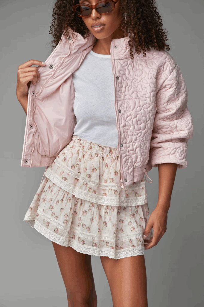 Stay cozy and chic with the Rylee Cropped Puffer Coat from For Love & Lemons. This pink puffer coat is both trendy and functional, offering excellent insulation against the cold.