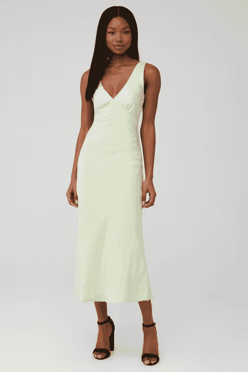 The Margie Dress from SER.O.YA is a standout among winter wedding guest dresses. Its deep eggplant color is perfect for a winter color palette. The long sleeves and maxi length provide coverage from the cold, while the slight slit adds a touch of allure.