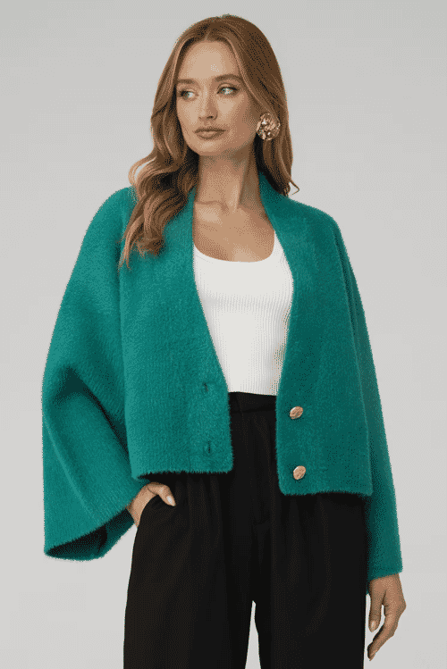 Add a touch of sophistication with the Pythia Vest by Karina Grimaldi. This versatile vest is perfect for layering and adds a chic element to any outfit.