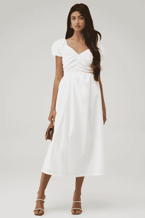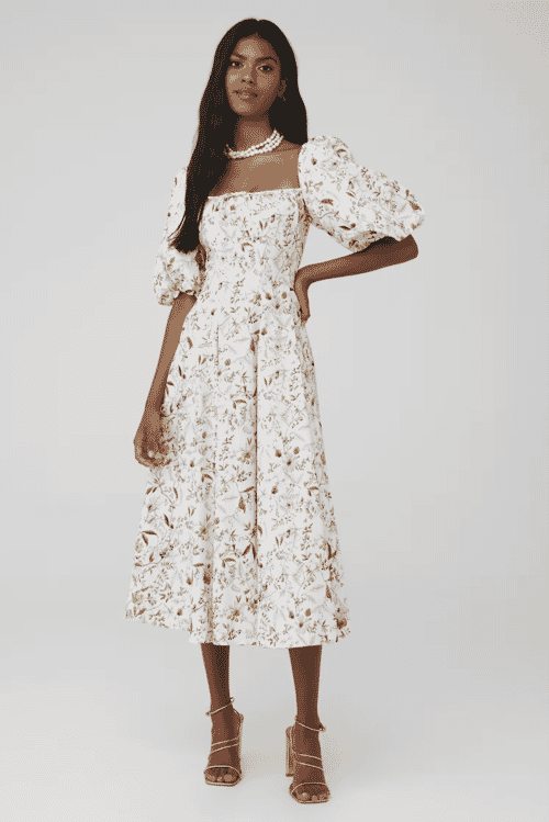 Complete our top picks with the Day Dress by Selkie. This charming dress is perfect for playful and whimsical engagement photos. Its unique design is ideal for beach settings or sunset photoshoots, adding a touch of magic to your love story. Wear it to a casual engagement gathering or a fun-filled engagement day adventure.