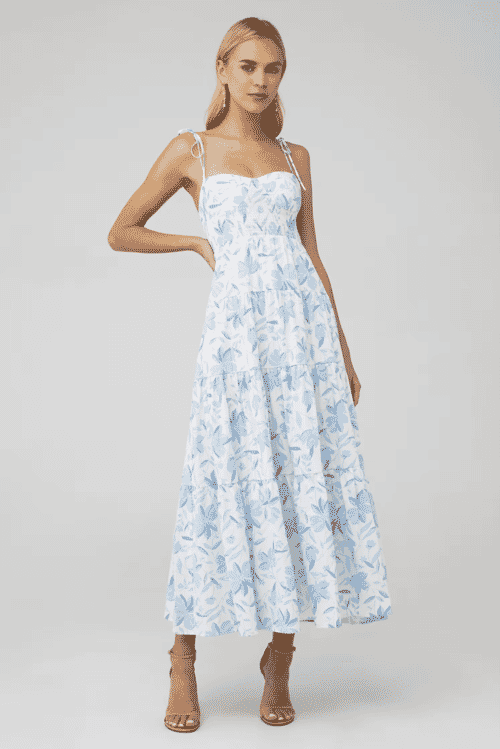 Make a statement with the Smocked Cupped Tiered Maxi Dress by WAYF. This romantic dress is ideal for couples who want to add a touch of whimsy and elegance to their engagement photos. Its tiered design adds movement and grace to your shots, making it perfect for a dreamy engagement photoshoot or a whimsical engagement party.