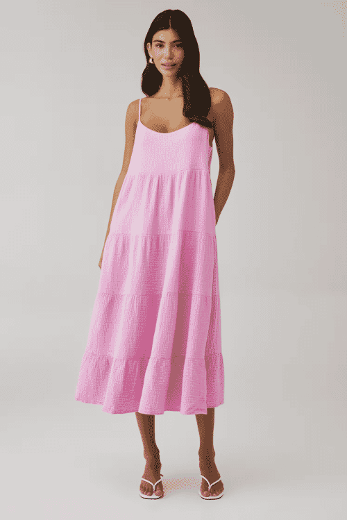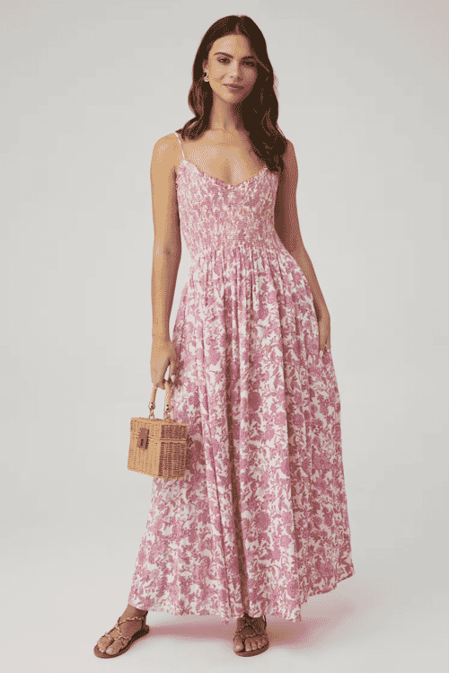 3. WAYF | Smocked Cupped Tiered Maxi Dress