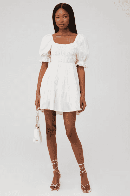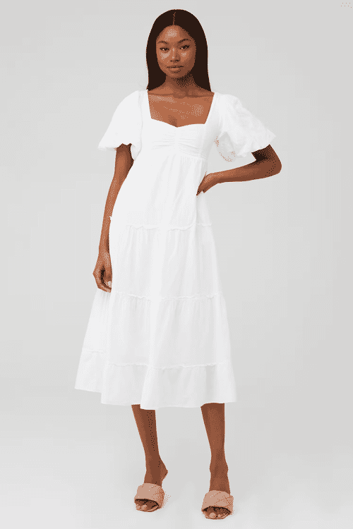 Complete our top picks with the Day Dress by Selkie. This charming dress is perfect for playful and whimsical engagement photos. Its unique design is ideal for beach settings or sunset photoshoots, adding a touch of magic to your love story. Wear it to a casual engagement gathering or a fun-filled engagement day adventure.