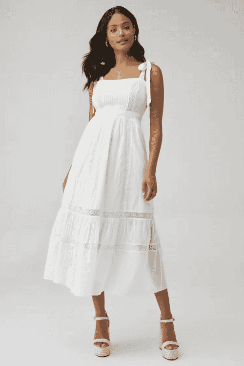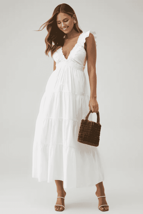 Make a statement with the Smocked Cupped Tiered Maxi Dress by WAYF. This romantic dress is ideal for couples who want to add a touch of whimsy and elegance to their engagement photos. Its tiered design adds movement and grace to your shots, making it perfect for a dreamy engagement photoshoot or a whimsical engagement party.